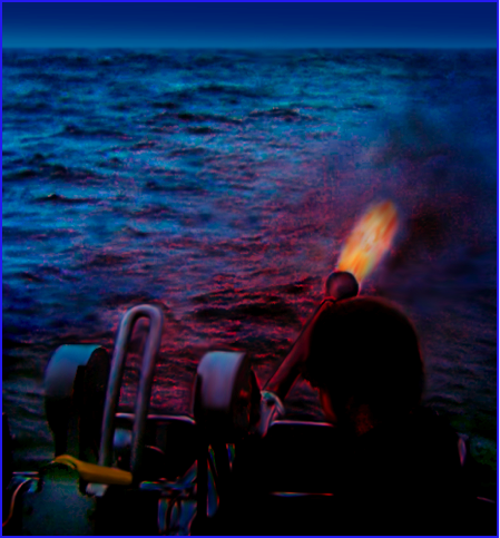 Hier erscheinen demnächst richtig goile Fotos, alles noch in Arbeit...! 100 mm Schiessen bei Nacht, usw..... Willkommen Boforsdeck Schiessabschnitt Nachtschiessen Nachtschiessen Nachtschiessen auf A69 Vorbereitung zum 100 mm Schiessen, Turm „Bravo“ schwenkt nach Steuerboard und Kapitän Boysen peilt die Lage.....! Es wird gleich dunkel und dann geht es rund...!!! Hier hämmert die 40 mm „Bofors“ gnadenlos ihren Takt....., 4 Schuss pro Sekunde !!!