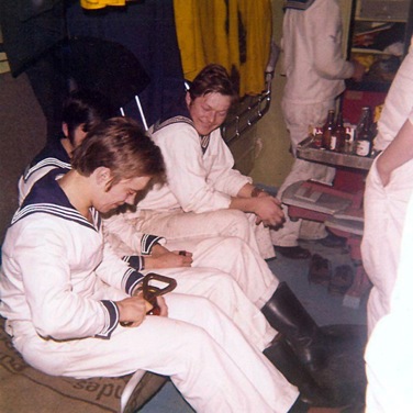 ICH glaube: da werdet Ihr wohl durstig bleiben... Die berühmte „1 Geige“, Roman, siehst supi aus !Die Mädels werden dir zu Füßen liegen....! An Land wollen Dir jetzt totsicher jede Menge süße Hasen einen erzählen !!!! (grins!) Das Bordleben: Wache gehen, arbeiten, rein schiff machen, Getränke fassen, usw................ Ronde über Oberdeck. Der 1WO auf der Schanz guckt nach dem Rechten. Alles im Griff auf´m Schiff, Herr Kaleu ??? Bordleben 2 Hier seht Ihr allerfeinste Handarbeit !!! Decksvor-