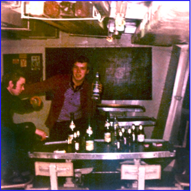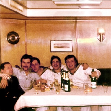 paar Pullen „Nobelbrause“, boa ey, war das goil....... (Seeziege „Minuth“) Ein Altgedienter mit mir in der Cafeteria...., gerade vom Landgang zurück.